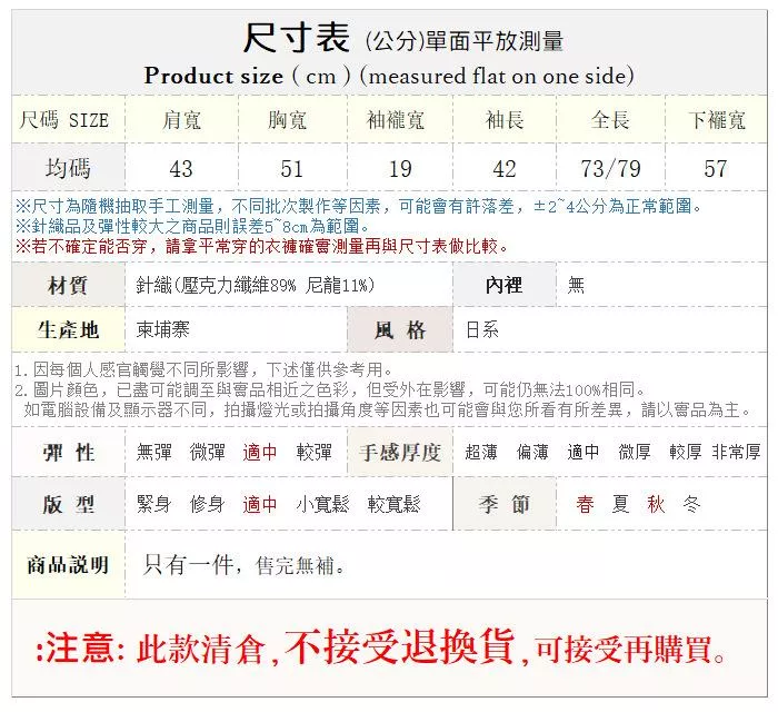 531 現貨│日單 RAY CASSIN FAVORI 花朵刺繡 V領喇叭袖上衣 寬鬆T恤#4231特價 700 現貨│韓製 濃系復古咖色寬袖子 V領寬鬆毛衣 厚實感針織#4125 568 現貨│日單 質感品牌 OPAQUE.CLIP 袖フレア♡ 喇叭袖 簡約單排釦長袖襯衫4351特價 150 現貨│韓國製 公主風卡通印花 粉紫色短袖T恤 微瑕疵4403