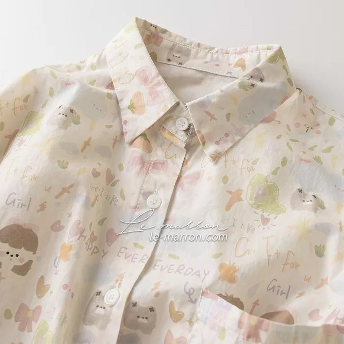 499 日系復古趣味🍅普普風色彩幾何印花 寬鬆長袖襯衫G1272預購 528 日系軟萌感♡可愛熊兔家園手繪風印花 寬鬆長袖襯衫G1150預購LEMARRON 518 日系可愛女孩頭×童趣香蕉花朵印花 寬鬆長袖襯衫G1311預購 479 日系×童趣🍒多彩櫻桃 チェリー可愛印花 長袖/短袖襯衫G1284預購