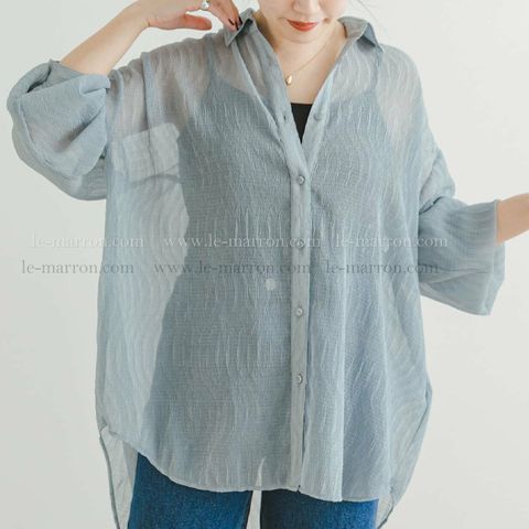 日單 日本小眾牌OFALO 清透感 壓褶燈籠袖寬鬆版透視雪紡衫 開衫防曬罩衫4413現貨